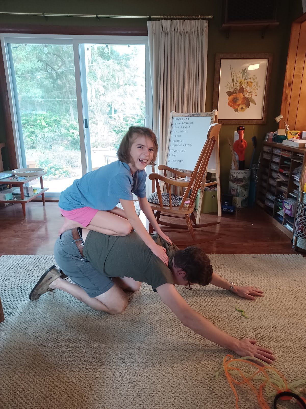 Last night we were playing Pictionary, and Dorothy's prompt, it turns out, was Girl Scouts. She explained her drawing: a daisy, brownies, a girl wearing patches, and me (Mama) on the computer, looking for a troop.
